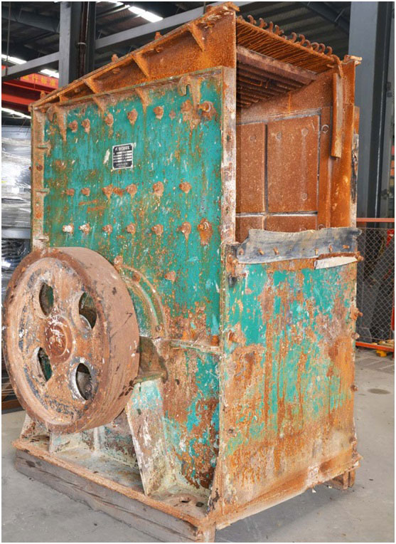 BP-1000錘式破碎機是我公司2005年在設備轉型升級期間設計研發的產品,是新老技術的結合體,凝聚了金寶山創始人房寶山和現任總經理房士奎兩代人的智慧。設備總重5.6噸,進料口寬度為1米,設計時產達80-100噸,雖然設備外觀保留了老產品的樣式,但是內部結構發生了巨大的變化,較老產品相比產量更高,運行更加穩定、可靠。在長達十五年的時間里,雖然此臺設備由于客戶及場地原因幾經流轉,但是得到了每位擁有著的稱贊,最終在平邑張總的生產現場退役,在張總購買公司新設備的同時我們把這臺具有紀念意義的設備帶回了家。